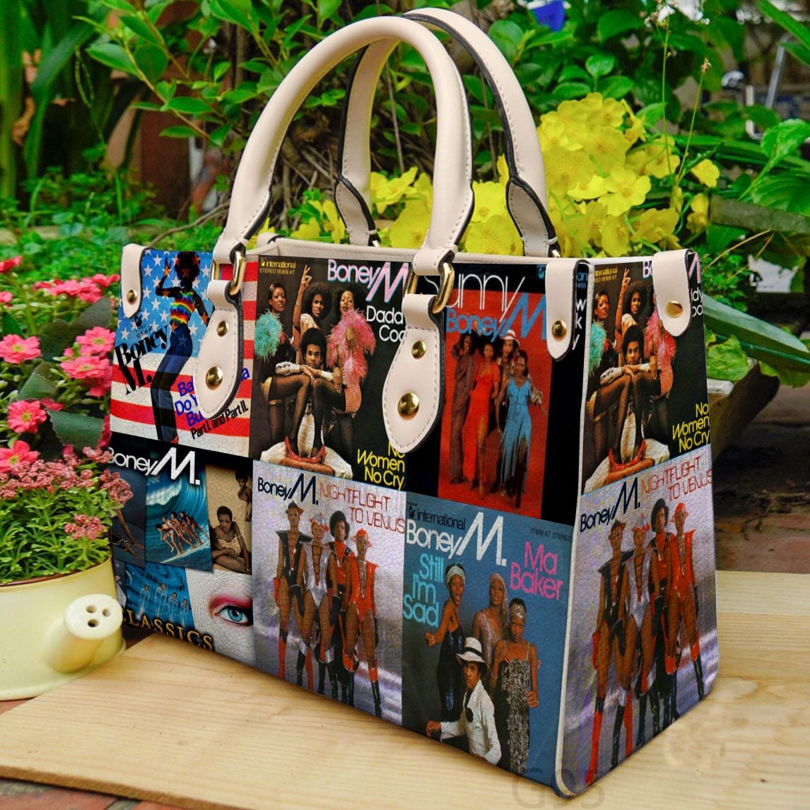 Embossed grained leather; Grained leather trim; Microfiber lining; Double-sided printing; Gold-color hardware; Handle: Double; Care Instructions; Maximum washing temperature: 140°F; No bleach; Hang dry in a shady place; Do not reverse to dry