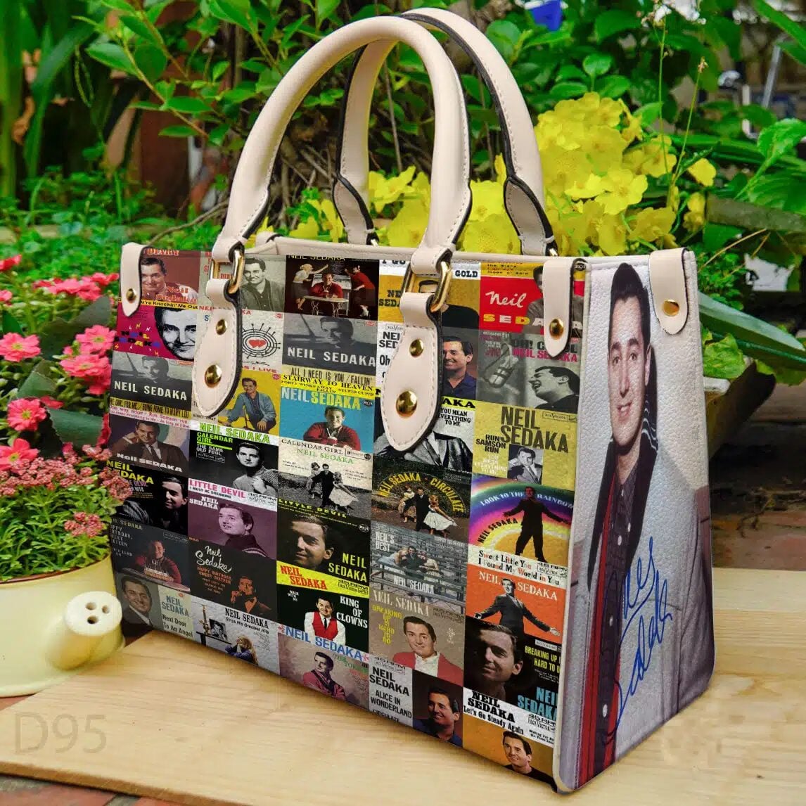 Embossed grained leather; Grained leather trim; Microfiber lining; Double-sided printing; Gold-color hardware; Handle: Double; Care Instructions; Maximum washing temperature: 140°F; No bleach; Hang dry in a shady place; Do not reverse to dry