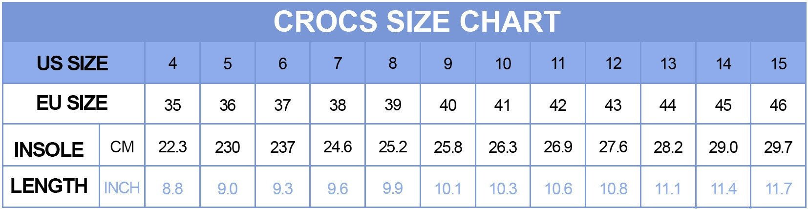 - Fully molded and easy to clean Crocs foam construction